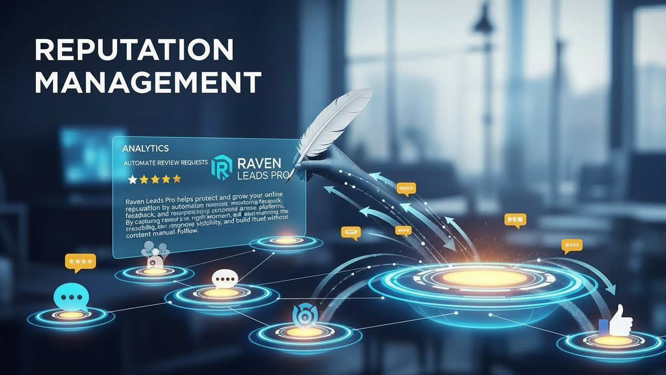 Raven Leads Pro helps protect and grow your online reputation by automating review requests, monitoring feedback, and responding across platforms. By capturing reviews at the right moment and managing responses centrally, you maintain credibility, improve visibility, and build trust without constant manual follow-up.